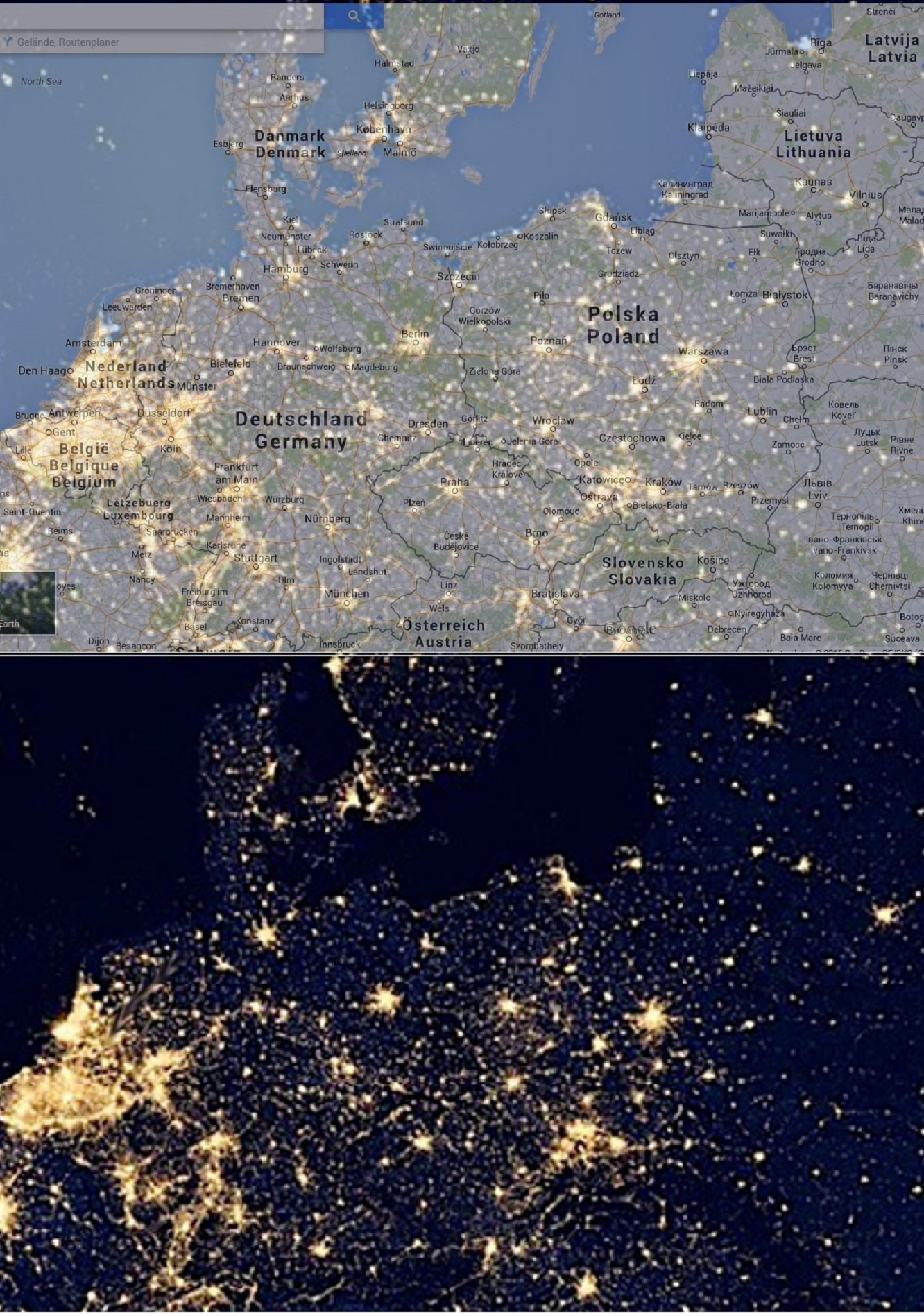 Dresden ist hier sogar bei Nacht aus dem All zu sehen. Schon krass!!